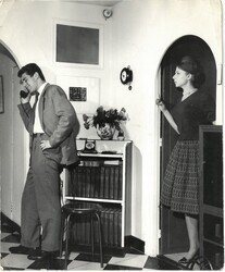 Scope and ContentBlack and white photograph of a man on the telephone with a woman watching