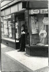 Scope and ContentBlack and white photograph of a man standing in a shop doorway lighting a cigarette