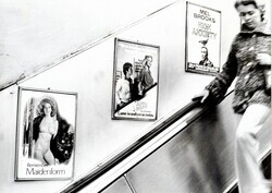Scope and ContentBlack and white photograph of advertisements at the side of a London Underground escalator