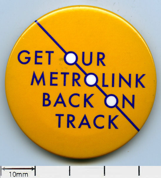 Scope and ContentTin badge with the text: Get our Metrolink back on track