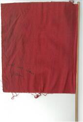Scope and ContentSmall red flag stapled onto a wooden stick. Signed on bottom left: with best wishes J Desai