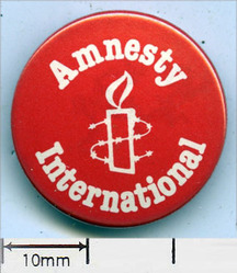 Scope and ContentTin badge with an image of a candle surrounded by barbed wire and the text: Amnesty International