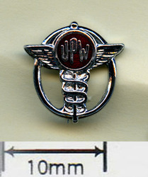 Physical descriptionBase metal and enamel Badge caduceus shape with ring round 20 mm