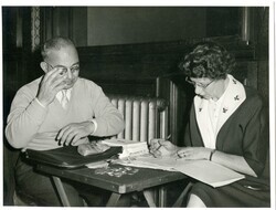 Scope and ContentBlack and white photograph of a man and a woman doing accounts paperwork