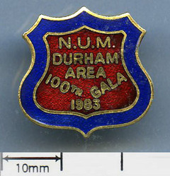 Scope and ContentEnamel badge with the text: NUM Durham Area 100th Gala 1983.