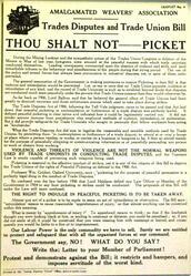 Scope and ContentEnlarged copy of a leaflet produced by the Amalgamated Weavers' Association entitled Thou shalt not - picket