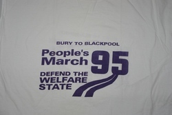 Scope and ContentWhite with "Bury to Blackpool People's March 95, Defend the welfare state" in purple lettering on front and back