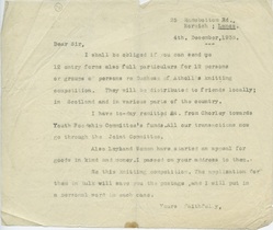 Scope and ContentCarbon copy of a letter to Dear Sir regarding entry forms for the Duchess of Atholl's knitting competition