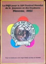 Scope and ContentPoster with the text: La FMJD pour le XIIe Festival Mondial de la jeunesse et des etudiants, Moscou, 1985. Pour la solidarite anti-imperialiste, la paix et l'amitie