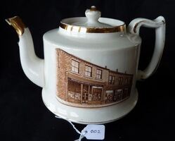 Scope and ContentTeapot to commemorate the jubilee of Hadfield Equitable Co-operative Society. Illustrated with an image of the Society's premises and the text: Jubilee celebration 1910. Hadfield Equitable Co-operative Society.
