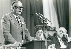 Scope and ContentBlack and white photograph of Denis Howell (MP and minister, APEX President), Marie Patterson (TUC Vice-President) and Cyril Plant (TUC President) at the Trades Union Congress conference in Brighton