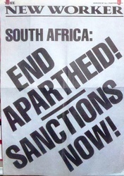 Scope and ContentPoster with the text: The New Worker. South Africa: End apartheid! Sanctions now!