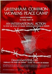 Scope and ContentPoster with thet text: Greenham Womens Common Peace Camp invite women to take part in an international action to stop the siting of Cruise missiles anywhere in Europe. December 12th and 13th. Embrace the base on Sunday. Close the base on Monday. Please gather at one of the 7 gates from 10am prior to encircling the base. On Monday morning, there will be training for the non violent direct action also legal back up. Overnight accommodation in marquees or own tents. Creche at Childrens gate where men in support of the womens action are welcome.