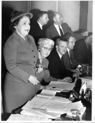 Scope and ContentBlack and white photograph of members of the Clerical and Administrative Workers Union. Caption on the back: Seated L to R - Helene Walker, Dame Anne Godwin, Henry Chapman, David Rhydderch, Jessie Stephen. Standing - Denis Howell, Frank Leath